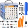 - Полный комплект инструментов: Помимо крепежа, в набор включены профессиональные съемники клипс (Fastener Removers), пластиковые стяжки и уплотнительные губки. Инструмент позволяет легко и аккуратно демонтировать старые пистоны и панели обшивки, не царапая кузов и пластик салона, даже в труднодоступных местах.