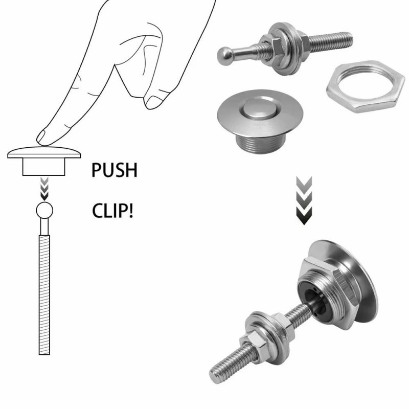 В отличие от классических резиновых защелок или хлипких заводских креплений, кнопочный фиксатор обеспечивает жесткую блокировку без люфтов. Данная позиция продается поштучно, что удобно, если вам требуется нечетное количество точек фиксации (например, для ящиков) или замена поврежденного элемента.