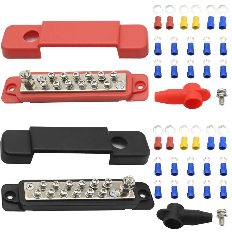 - Полный установочный комплект: В наборе идут два блока (плюс и минус), а также все необходимые клеммы и кольцевые наконечники для быстрого монтажа.