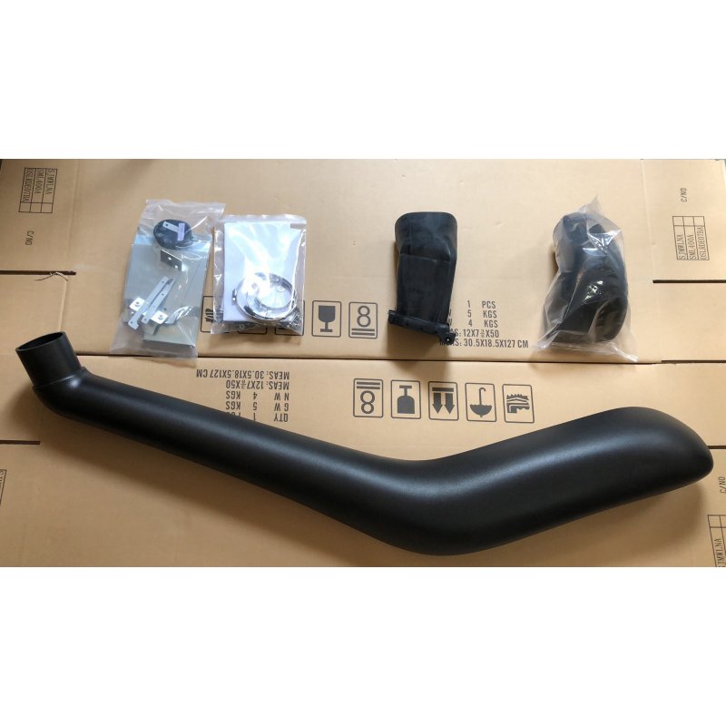 Шноркель Telawei – высокое качество, всемирно известного бренда по доступной цене. Шноркель выполнен из долговечного и высокопрочного линейного полиэтилена низкой плотности (LLDPE). Имеет шероховатую поверхность. Толщина стенок равна 4мм. Благодаря своим химическим свойствам, шноркель рассчитан на температуры до +120 градусов Цельсия. Материал выдерживает и морозы, до -50 градусов. При этом, стоит отметить устойчивость шноркеля к растрескиваю и сохранению первоначального вида длительное время. Данный материал используется при создании первоклассных австралийских шноркелей Safari и TJM Snorkel. Шноркель Telawei кроме практичности и надежности имеет красивый, эргономичный дизайн.