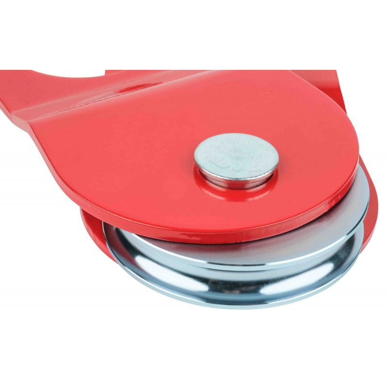 Такелажный блок выполнен из высокопрочной стали, имеет продуманную конструкцию, избегающую закусывания и повреждения троса, выдерживает нагрузки до 10 тонн, а также совместим с тросами размером до 14 мм.