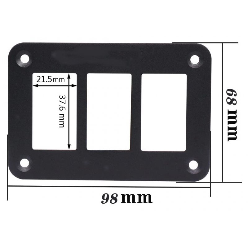Универсальная панель для тумблеров рассчитана на установку 3 тумблеров и предназначена для установки в автомобиле, грузовике, автобусе, катере, квадроцикле и других транспортных средствах. Размер панели составляет 98×68 мм, что делает её совместимой с большинством стандартных тумблеров.