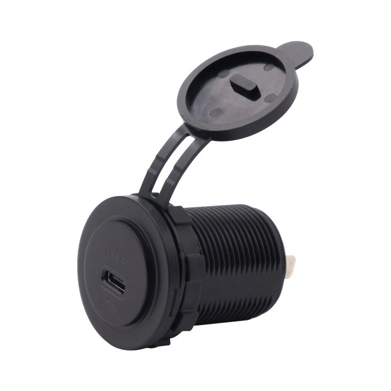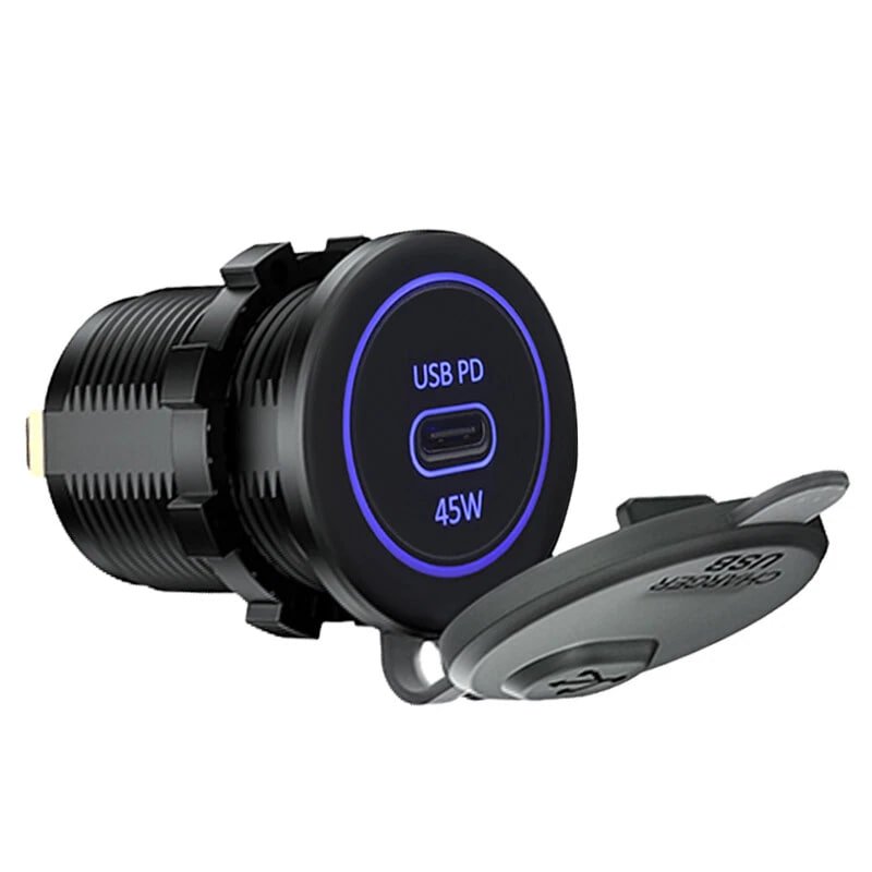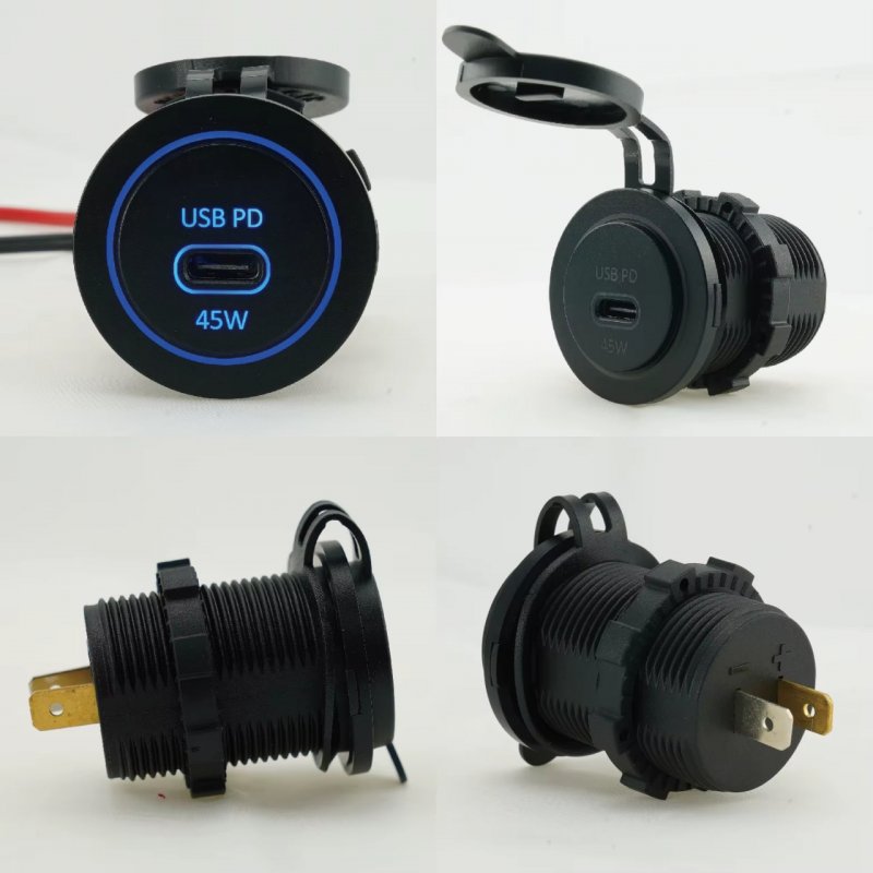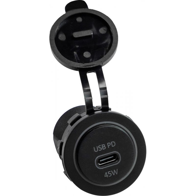 Данное устройство представляет собой высокопроизводительный разъем USB Type-C, предназначенный для установки в транспортные средства (автомобили, грузовики, автобусы, спецтехнику, катера). Главной особенностью модели является высокая выходная мощность 45 Вт, что позволяет заряжать не только смартфоны, но и более энергоемкую технику, такую как ультрабуки и MacBook.