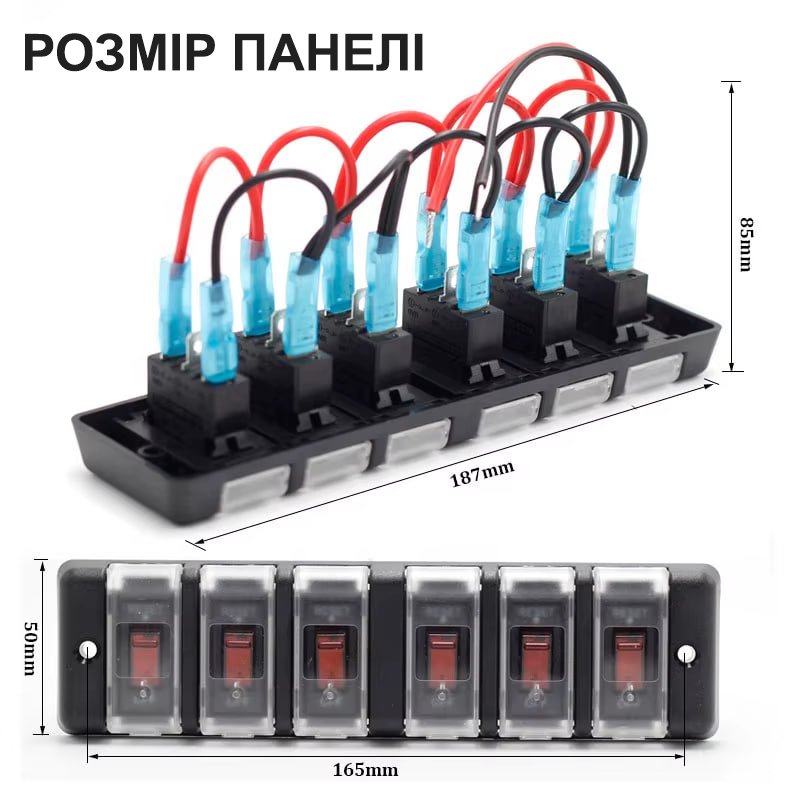Универсальная панель управления на 6 тумблеров, предназначенная для организации бортовой электросети транспортных средств. Панель тумблеров отличается повышенной надежностью благодаря использованию огнестойких материалов и герметичной конструкции тумблеров.