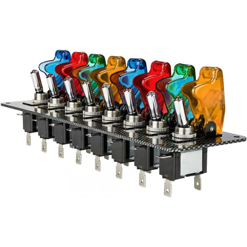 Многофункциональная панель управления "8 в 1", предназначенная для тюнинга автомобилей, использования в автоспорте или оснащения автодомов. Панель позволяет сгруппировать управление дополнительным электрооборудованием в одном месте, придавая интерьеру автомобиля профессиональный спортивный вид.