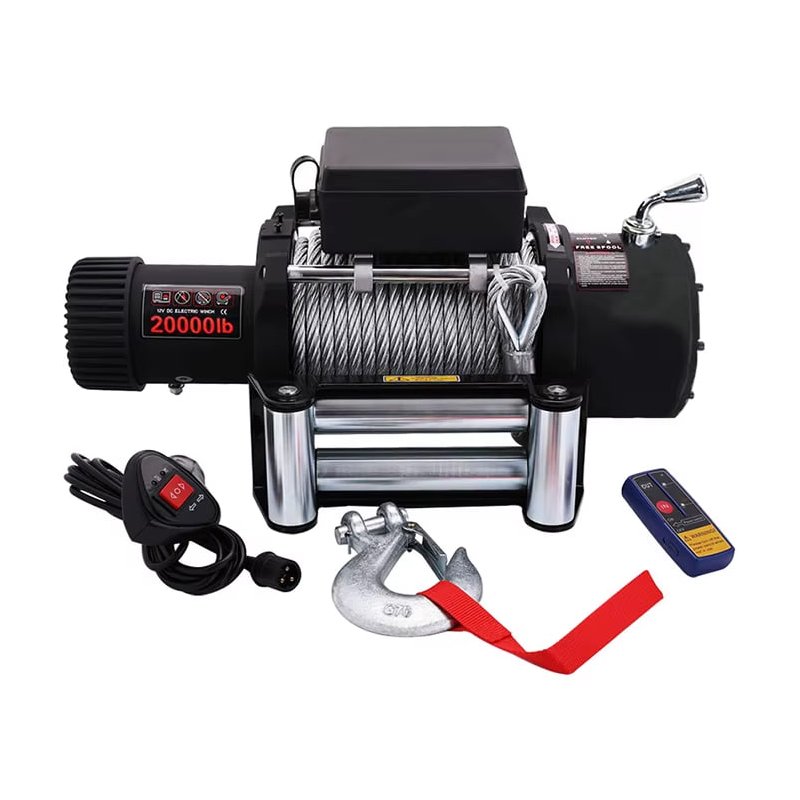 ElectricWinch 20000lbs 24В велика лебідка призначена для встановлення на вантажівки або евакуатори, потужність більше восьми тонн дозволить цій лебідці виконати будь-яку, навіть найважчу роботу. Неважливо, чи витягуєте себе з бруду або іншу машину з канави.