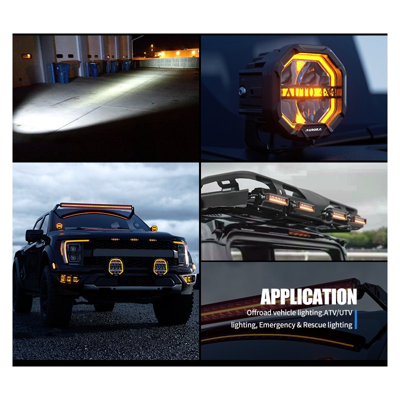 Модульні світлодіодні фари Aurora ALO-W-4-R12T3-AW-D8 універсальні: ідеально підходять для позашляховиків, пікапів, вантажівок, UTV/ATV, спецтехніки та катерів.