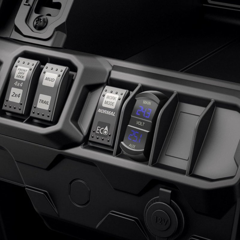 Компактний та точний цифровий вольтметр дозволяє одночасно контролювати напругу основного та додаткового акумуляторів вашого автомобіля, мотоцикла чи катера. Пристрій в реальному часі відображає параметри на яскравому дисплеї, допомагаючи вчасно визначити розряд батареї і уникнути проблем при запуску двигуна.